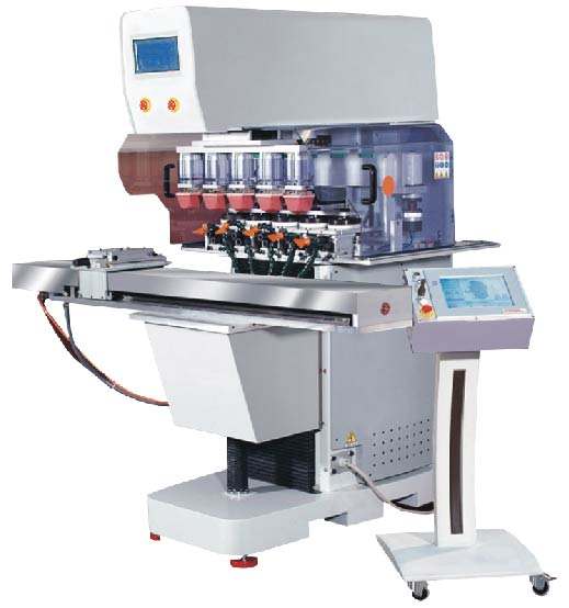 5色移印機采用伺服電機控制任意角度印刷五色伺服穿梭移印機