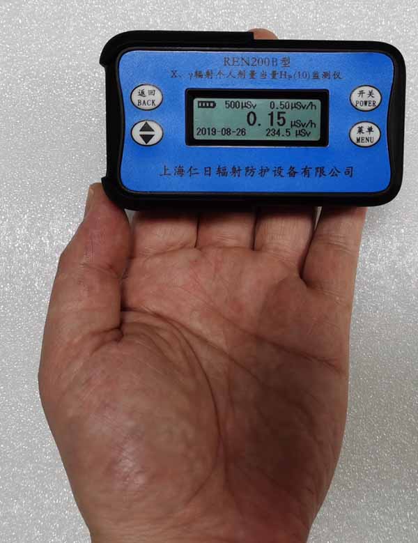 REN200B型X、γ輻射個(gè)人劑量當(dāng)量HP(10)監(jiān)測(cè)儀(簡(jiǎn)稱(chēng):個(gè)人劑量報(bào)警儀)內(nèi)置高量程蓋格計(jì)數(shù)管為探測(cè)器,主要用來(lái)監(jiān)測(cè)各種放射性工作場(chǎng)所的X、γ以及硬β射線的輻射,具有較寬的測(cè)量范圍。能顯示工作場(chǎng)所的劑量當(dāng)量率和累積劑量,更換電池時(shí),日期及累積數(shù)據(jù)能永久保存。可選配RenRiPersonal個(gè)人劑量管理軟件,該軟件可存儲(chǔ)多個(gè)人的歷史數(shù)據(jù),能記錄日累積、月累積、年累積、輻照時(shí)長(zhǎng)、計(jì)算平均劑量率、扣除或不扣除本底輻射,且以文字和圖譜的方式展現(xiàn)數(shù)據(jù)。廣泛應(yīng)用于核電站、加速器、鋼鐵、化工、同位素應(yīng)用、工業(yè)X、γ無(wú)損探傷、放射醫(yī)療、鈷源治療、γ輻照、放射性實(shí)驗(yàn)室、核設(shè)施周?chē)h(huán)境監(jiān)測(cè)等領(lǐng)域中的工作人員進(jìn)行個(gè)人安全防護(hù)監(jiān)測(cè)及放射性提示。